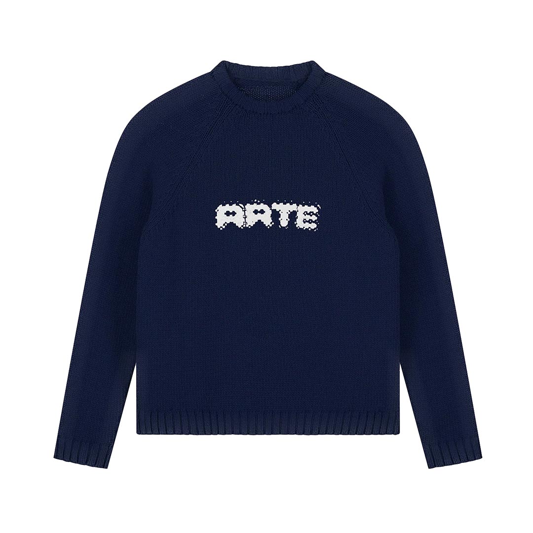 Realizzato in cotone pesante, il maglione lavorato a maglia è disponibile in una tonalità crema e ha una vestibilità regolare. Il capo presenta un logo Arte stagionale ricamato in bordeaux sul petto, che riprende il tema della collezione.