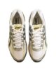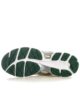 La struttura della tomaia presenta una combinazione di strati sovrapposti in pelle sintetica lucida, inserti senza cuciture e sottostrati in mesh aperto. Questa fusione di materiali crea un’estetica tecnica che caratterizza le scarpe da running evolute degli anni 2010.