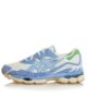 La struttura della tomaia richiama il modello GEL-NIMBUS 3 dei primi anni 2000 e combina diversi accenti decorativi ispirati alla GEL-MC PLUS V.