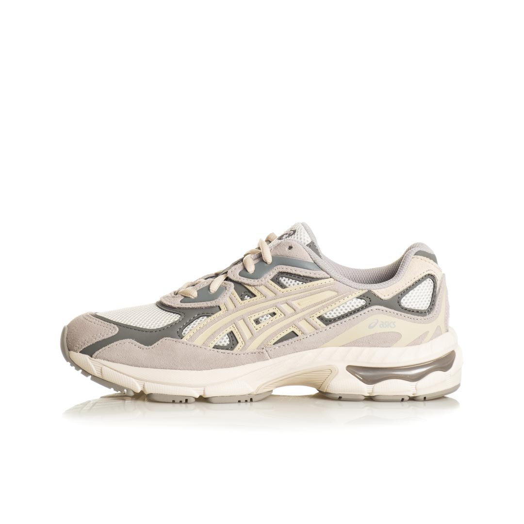 La struttura della tomaia richiama il modello GEL-NIMBUS 3 dei primi anni 2000 e combina diversi accenti decorativi ispirati alla GEL-MC PLUS V.