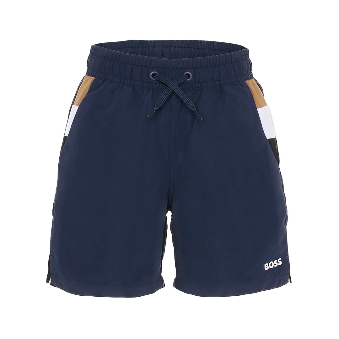 Questi eleganti pantaloncini da bagno Boss sono perfetti per i ragazzi che amano distinguersi. Il colore blu scuro conferisce loro un look intramontabile e fresco, mentre le pratiche tasche bianche e marroni aggiungono un dettaglio giocoso ed elegante. Realizzati in un materiale morbido e leggero, sono ideali per le calde giornate in spiaggia o in piscina. L’elastico in vita assicura una vestibilità comoda e li rende facili da indossare e togliere. Grazie al design accattivante, questi pantaloncini da bagno si abbinano facilmente ad altri capi estivi. Perfetti per divertirsi in acqua, per le vacanze o semplicemente per giocare al sole. Pantaloncini da bagno Boss super carini ed eleganti che ogni ragazzo adorerà!