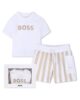 Con dettagli logo su entrambi i capi, questo set BOSS Bambini per neonati comprende shorts a righe con coulisse in cotone e una T-shirt in cotone elasticizzato. Confezionato come regalo.