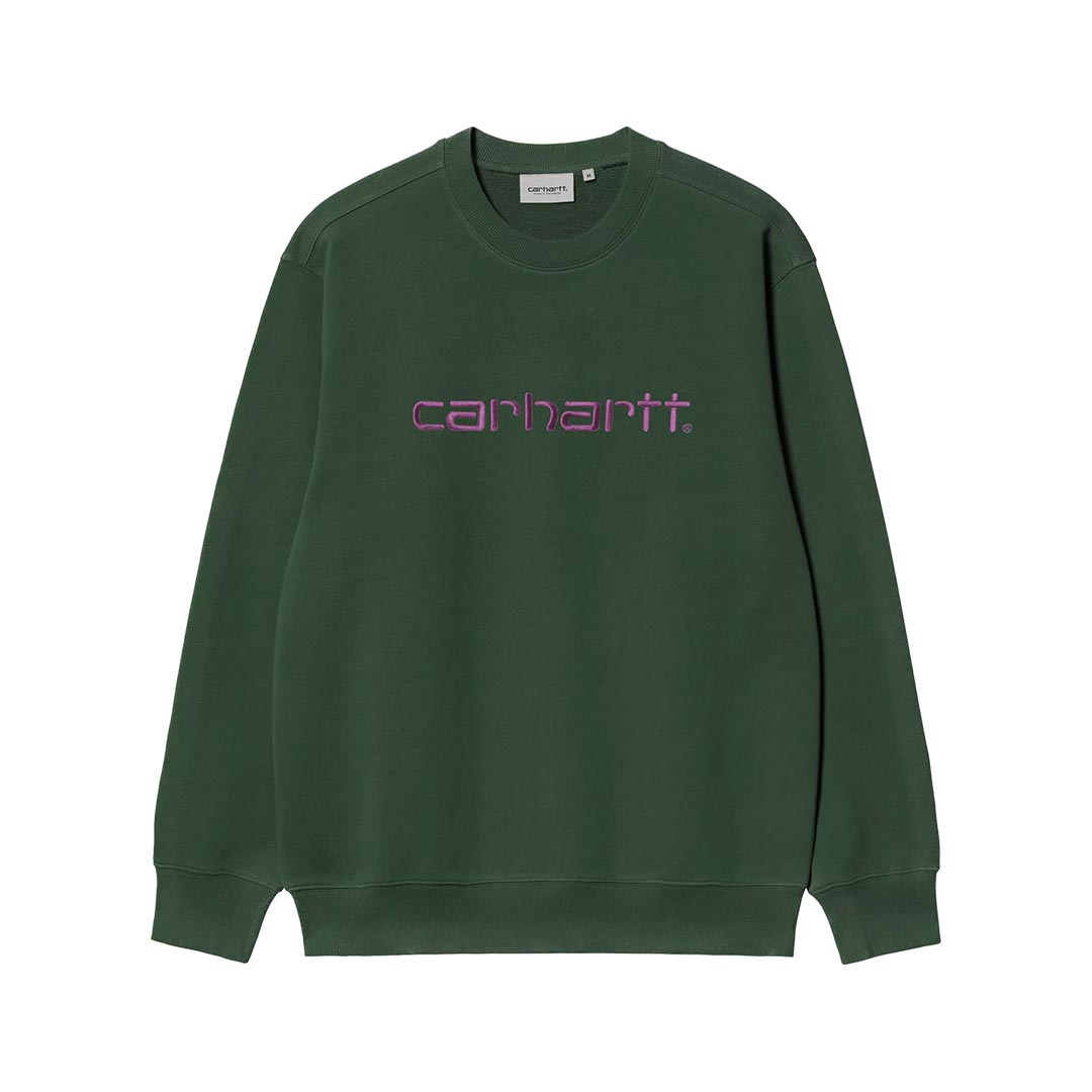 La Carhartt Sweatshirt è caratterizzata da vestibilità ampia ed è realizzata in pesante jersey di cotone-poliestere spazzolato per un effetto felpato. Presenta inoltre colletto, orlo e polsini a coste. Sul petto campeggia un ricamo del logo