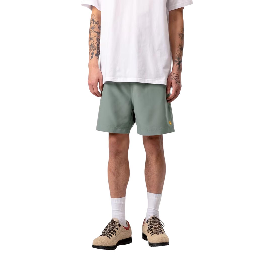 I Chase Swim Trunks sono realizzati in leggero tessuto di poliestere con caratteristiche impermeabili e ad asciugatura rapida. Presentano inoltre fodera interna in rete. I costumi da bagno sono caratterizzati da due tasche laterali inserite nelle cuciture e una tasca posteriore con portachiavi. Sulla gamba sinistra campeggia il ricamo del logo “C”.