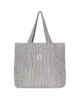 La Mercer Tote Bag è realizzata in pesante cotone non foderato caratterizzato da righine allover. La borsa presenta uno scomparto principale con bottone e un’ulteriore tasca interna. Il design è rifinito da un’etichetta quadrata in tessuto.