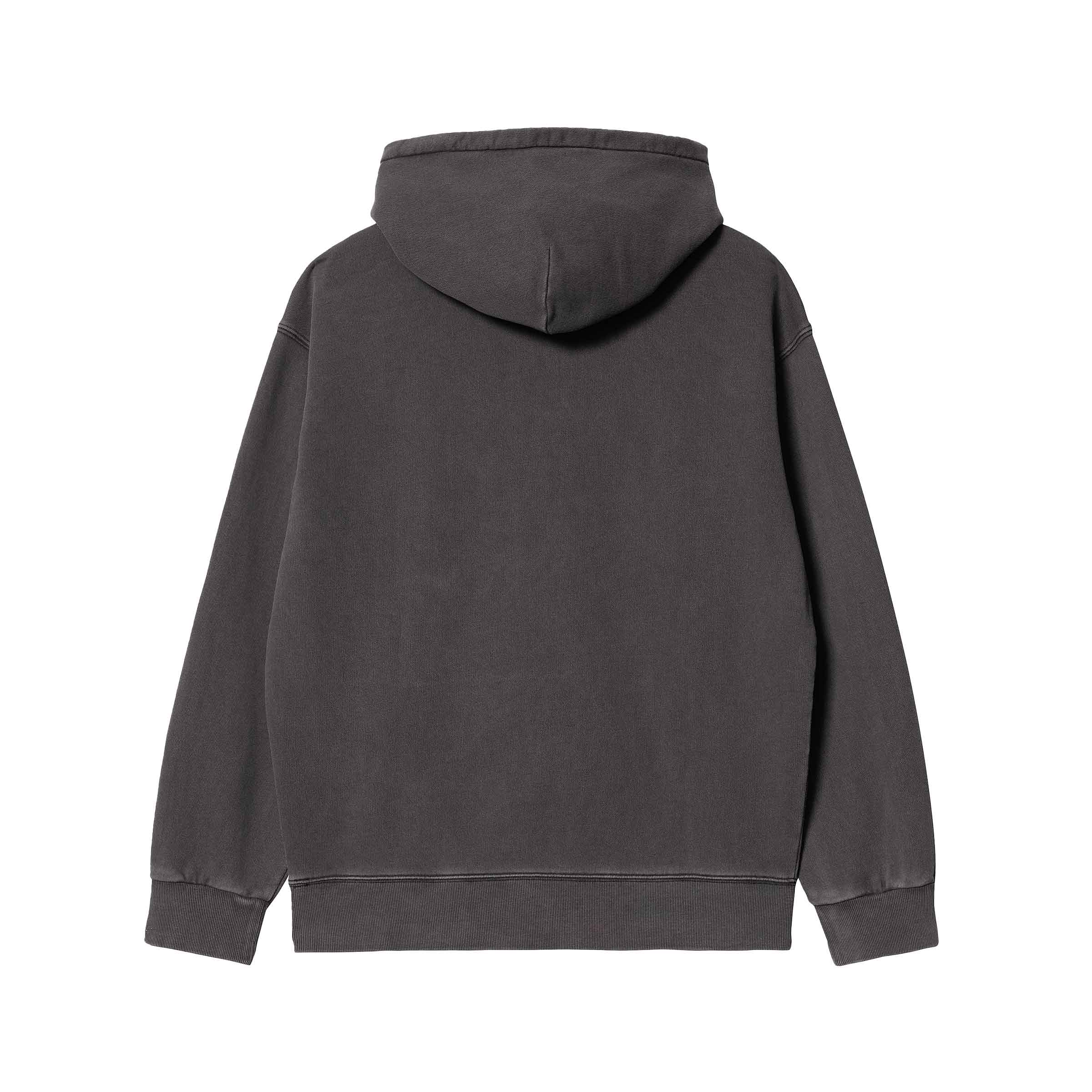 La Hooded Nelson Sweatshirt è realizzata in pesante jersey di cotone non spazzolato. La camicia è stata tinta in capo per un colore più intenso. È dotata di tasca a marsupio e cappuccio trapuntato regolabile con imbottitura. Il vistoso taglio “a palloncino” la rende più ampia e comoda, ed è contraddistinta da spalle scese e polsini a coste. Rifinitura con la classica etichetta in tessuto Carhartt WIP sul lato sinistro del petto.