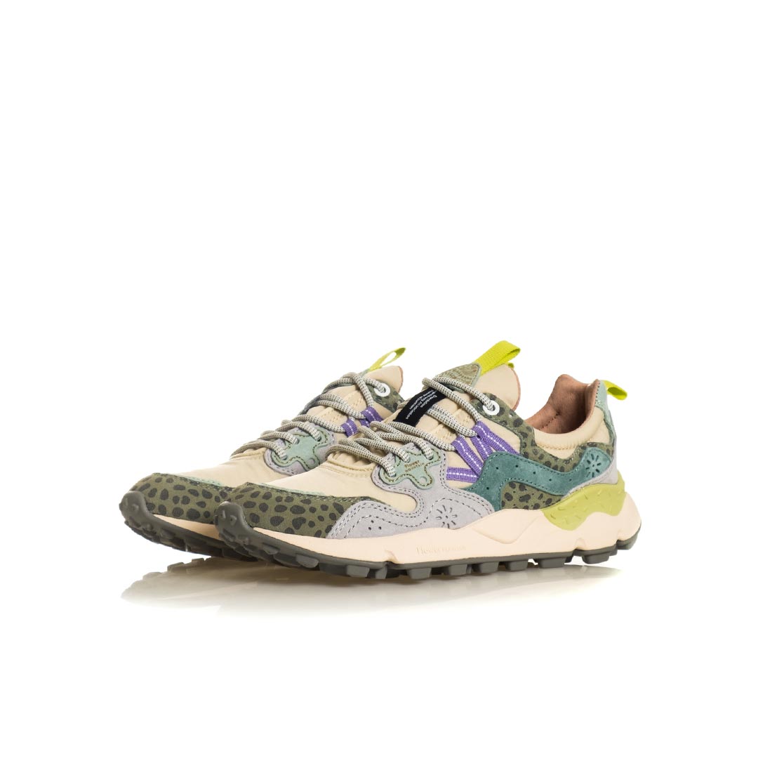 Femminilità e spirito outdoor si fondono in un design attuale, perfetto da abbinare alle mise active quanto alle longuette più glamour: Yamano è la sneaker dalla tomaia in pelle caratterizzata da inserti in tessuto tecnico e dall’iconico occhiello dalla forma sagomata, ispirata al fiore del tarassaco. Le linee evocano le calzature trekking, con suola in gomma ultra leggera e battistrada dentellato. La soletta interna in sughero naturale antibatterico assicura benessere al piede e comfort all day long.