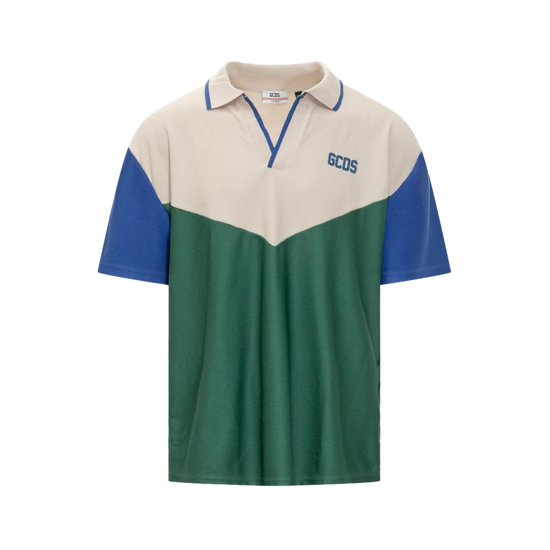 La polo a maniche corte GCDS Color Block Polo SS presenta audaci pannelli color block per un look contemporaneo e sportivo. Si adatta bene a outfit casual e smart-casual. Caratteristiche principali: Multicolor | Verde cacciatore | Blu | Colletto polo | Maniche corte | Pannelli color block