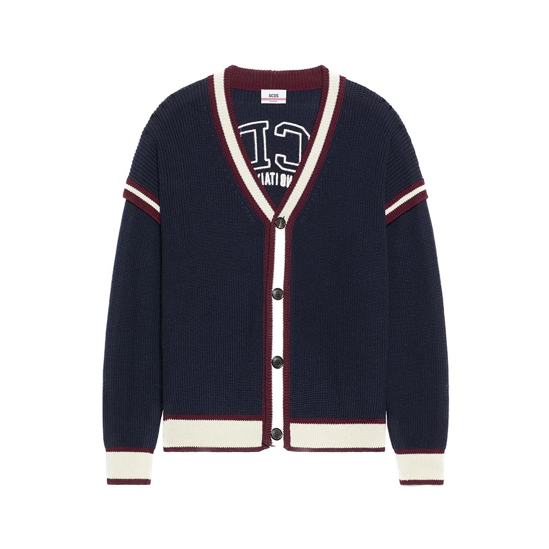 Cardigan in maglia dallo stile college, con bordi a contrasto. Ricamo logo “GCDS Lounge” sulla parte posteriore.