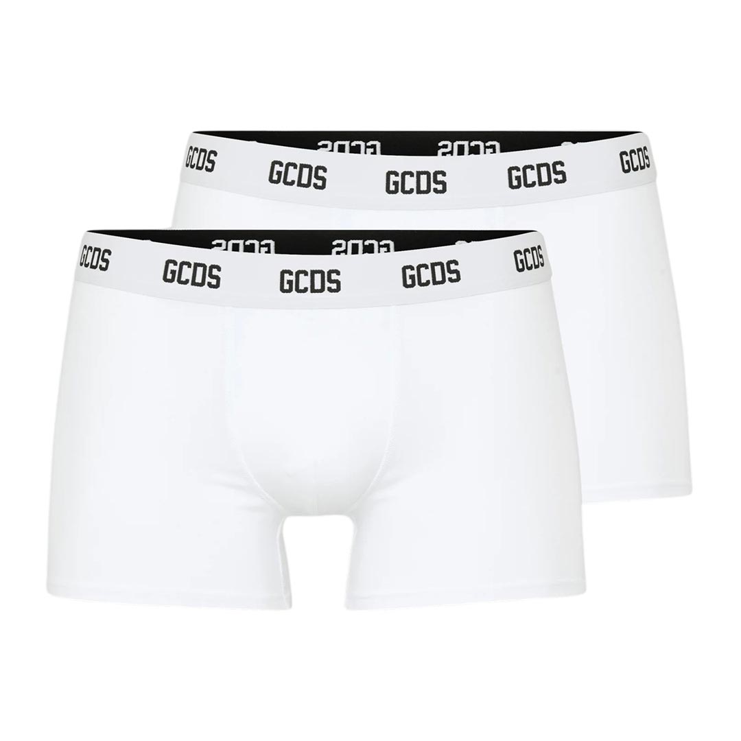 Pack 2 boxer, realizzati in cotone stretch che si adattano alle forme del corpo, offrendo una vestibilità comoda e flessibile. L’elastico in vita è impreziosito dal logo “GCDS Wear”.