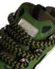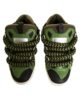 Sneakers verde del brand Lanvin Petite, realizzate in vernice, lacci e punta tonda; dotate di doppi lacci, un paio con motivo Curb piatto e l’altro paio con il nuovo motivo Curb tubolare, denominato Snake . Sono decorate con logo.