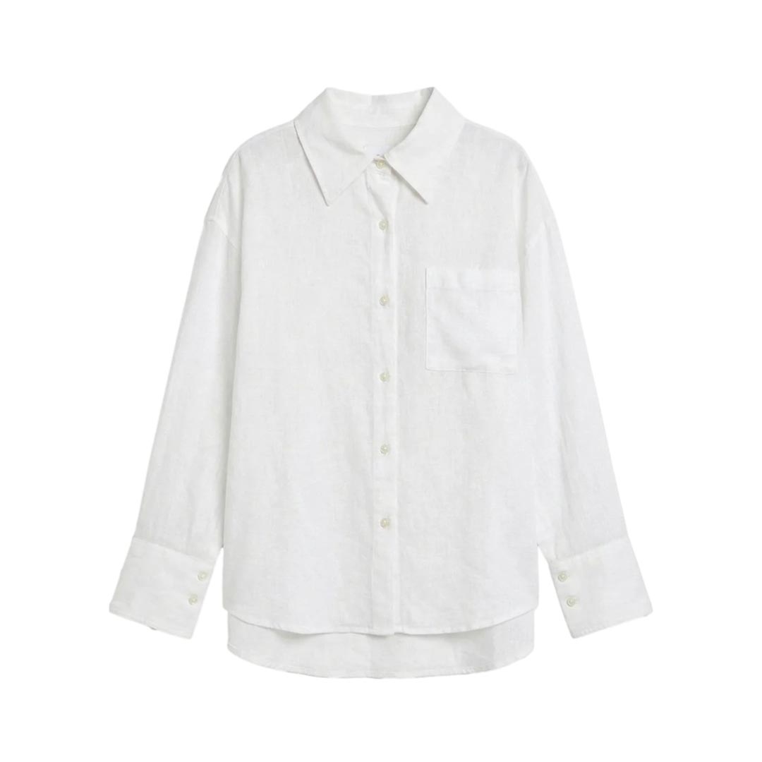La camicia da donna e dalla vestibilità morbida è il capo ideale quando vuoi un look curato ma disinvolto. Il taglio asimmetrico con un pannello posteriore molto più lungo aggiunge un tocco di originalità al tuo guardaroba raffinato. Indossala abbottonata e abbinala a un paio di pantaloni di pelle o jeans, oppure apri un paio di bottoni per un look più informale. Leggero, morbido e arioso, questo tessuto misto di lino è perfetto per i mesi estivi. Rifinita in Bright White, una colorazione che non può mancare nel guardaroba.