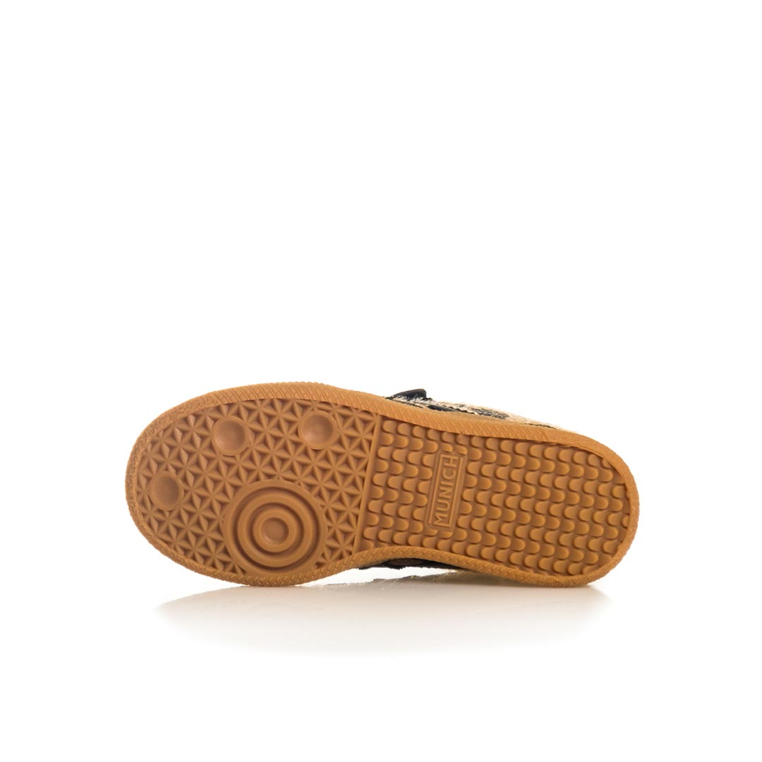 La MINI BARRU è una scarpa per bambini dal design retrò, che unisce un taglio classico e una suola ispirata ai vecchi modelli. Il suo interno in tessuto e l’esterno sintetico e tessile offrono comfort e durata, rendendolo un’opzione ideale per ogni occasione.