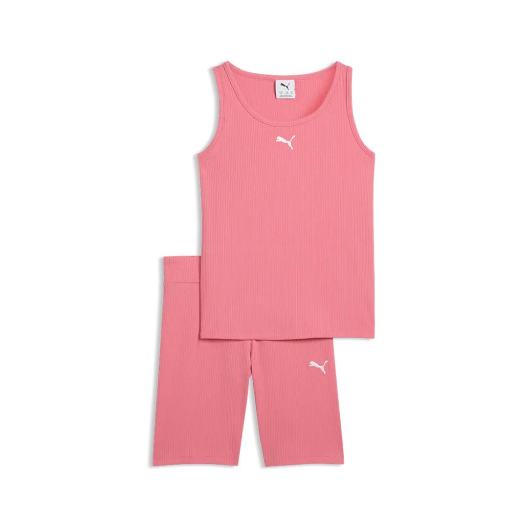 Canotta a coste: logo gatto ricamato; Leggings corti a coste: logo gatto ricamato;