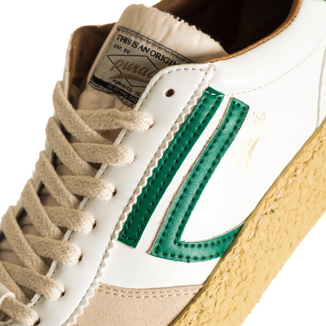 1.01 Vintage è la miscela perfetta di stile e sostenibilità. Queste sneaker Puraai sono ecologiche e cruelty-free, realizzate con materiali riciclati e biologici. La tomaia in pelle vegana e la suola in gomma sono completate da accenti sul tallone e sui lati. Le cuciture aggiuntive sulla suola garantiscono una lunga durata.