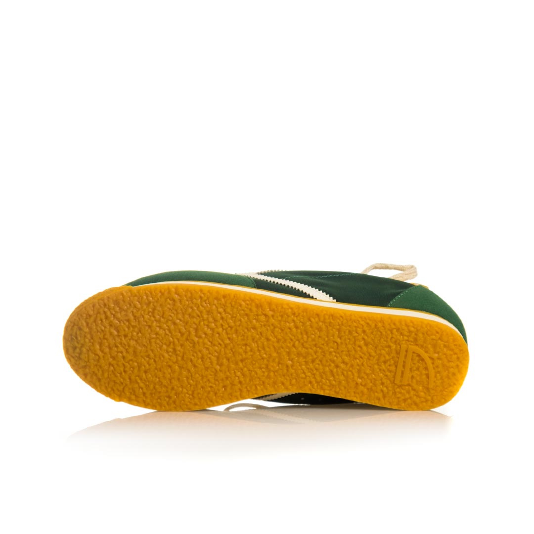 La linguetta è realizzata in tessuto con marchio, la fodera interna, mentre la soletta e la tomaia sono parzialmente in sughero naturale e parzialmente in tessuto. Un logo bianco in pelle vegana adorna il lato. La suola in gomma con un’altezza di 1 cm completa il design sostenibile in modo funzionale.