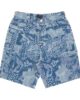 Stonewash Collage: denim da 13,5 once (94% cotone, 6% poliestere) con stampa all-over a scarico, Taupe Canvas: tela di cotone 100%, pantaloncini larghi con tasche anteriori, taschino portamonete, tasche posteriori e etichetta con logo in tessuto.