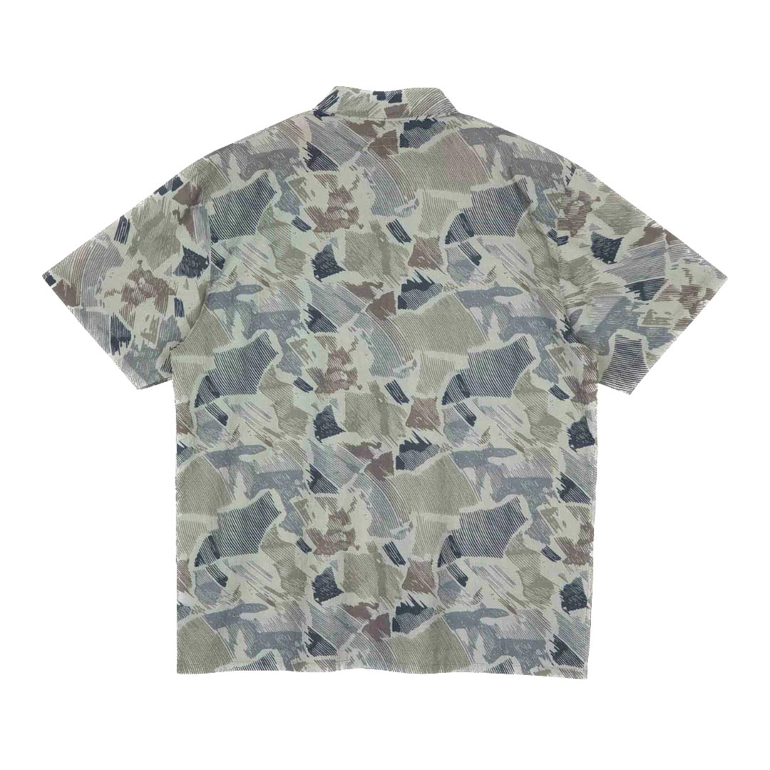 Camicia a maniche corte in popeline di cotone 100%, vestibilità regolare, con stampa integrale, due tasche sul petto, bottoni con logo e etichetta in gomma con logo.