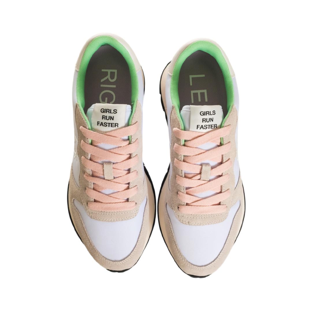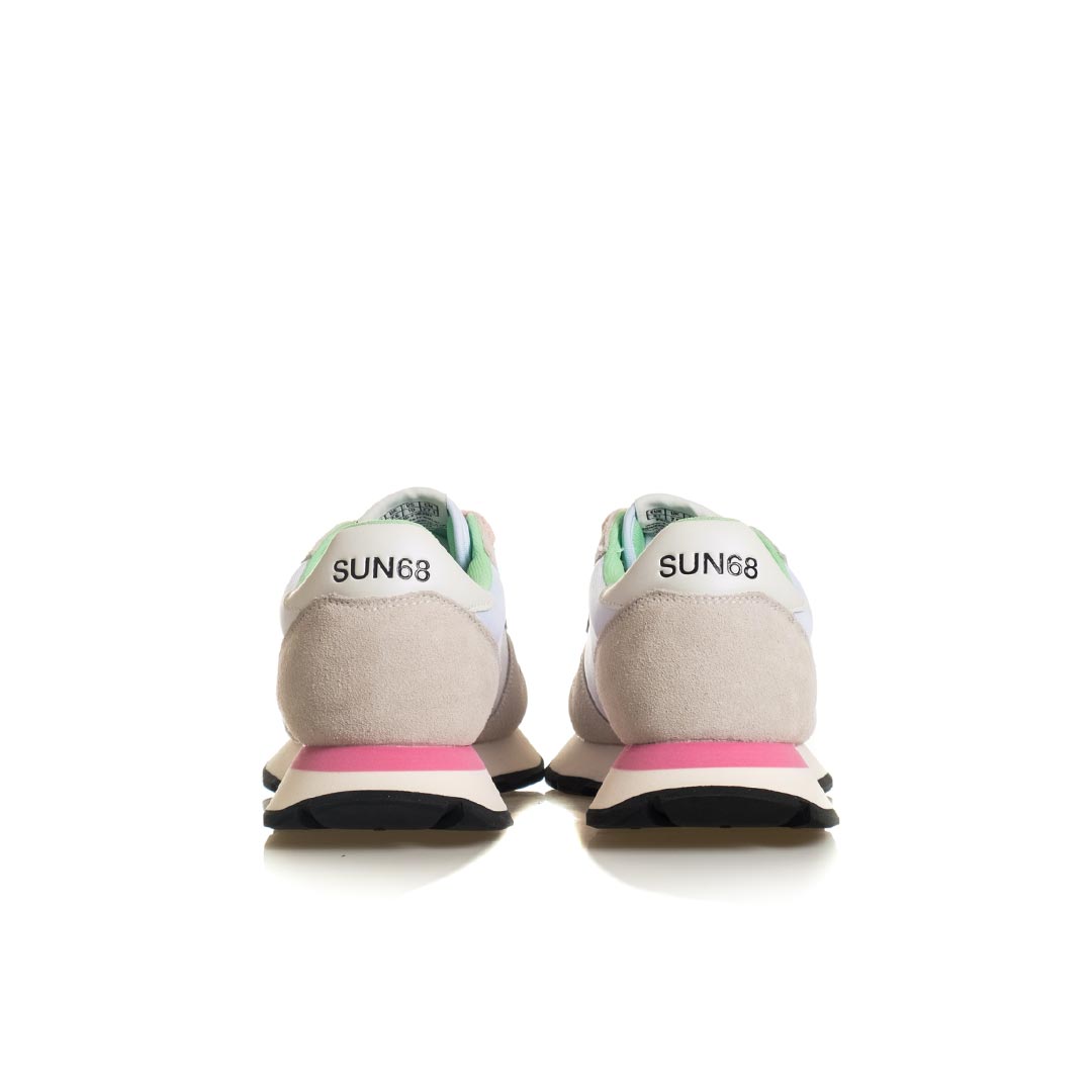 In equilibrio tra leggerezza sportiva e attitudine urbana, Ally è la sneaker femminile stile running che esprime in ogni dettaglio lo spirito SUN68. Perfetta da indossare con un pantalone chino per le giornate in città, si abbina con naturalezza ai look più casual per un’estetica dinamica e sempre distintiva.