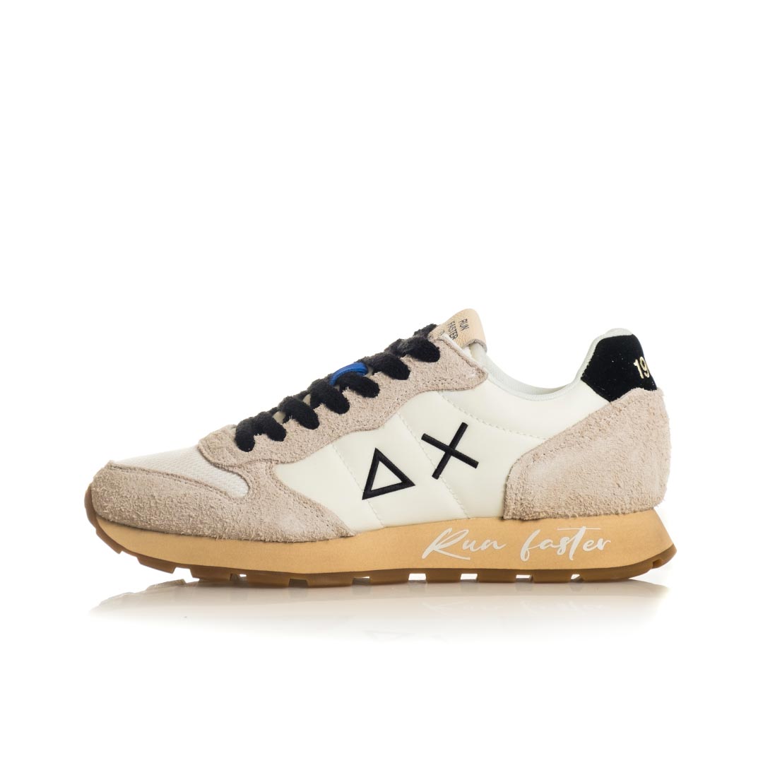 Design classico dall’estetica autentica. La sneaker Tom Vintage si ispira all’icona SUN68 e la reinterpreta con un ricercato effetto used e il lettering “Run faster” che decora la suola.