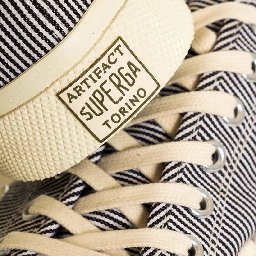 Works è la sneaker Superga Artifact realizzata in tela di cotone leggero e traspirante: lo stile workwear d’ispirazione anni ’70, ripreso dagli archivi storici del brand, dà carattere a una silhouette allacciata pulita ed essenziale, con suola a cassetta, punta leggermente squadrata e rinforzi laterali in gomma.