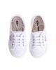 L’iconica Superga 2750 in versione junior per piccoli con grandi obiettivi di stile. La tomaia in tela di cotone resistente e traspirante, la linea leggera e la suola in gomma vulcanizzata rendono il modello un vero jolly dei look quotidiani.