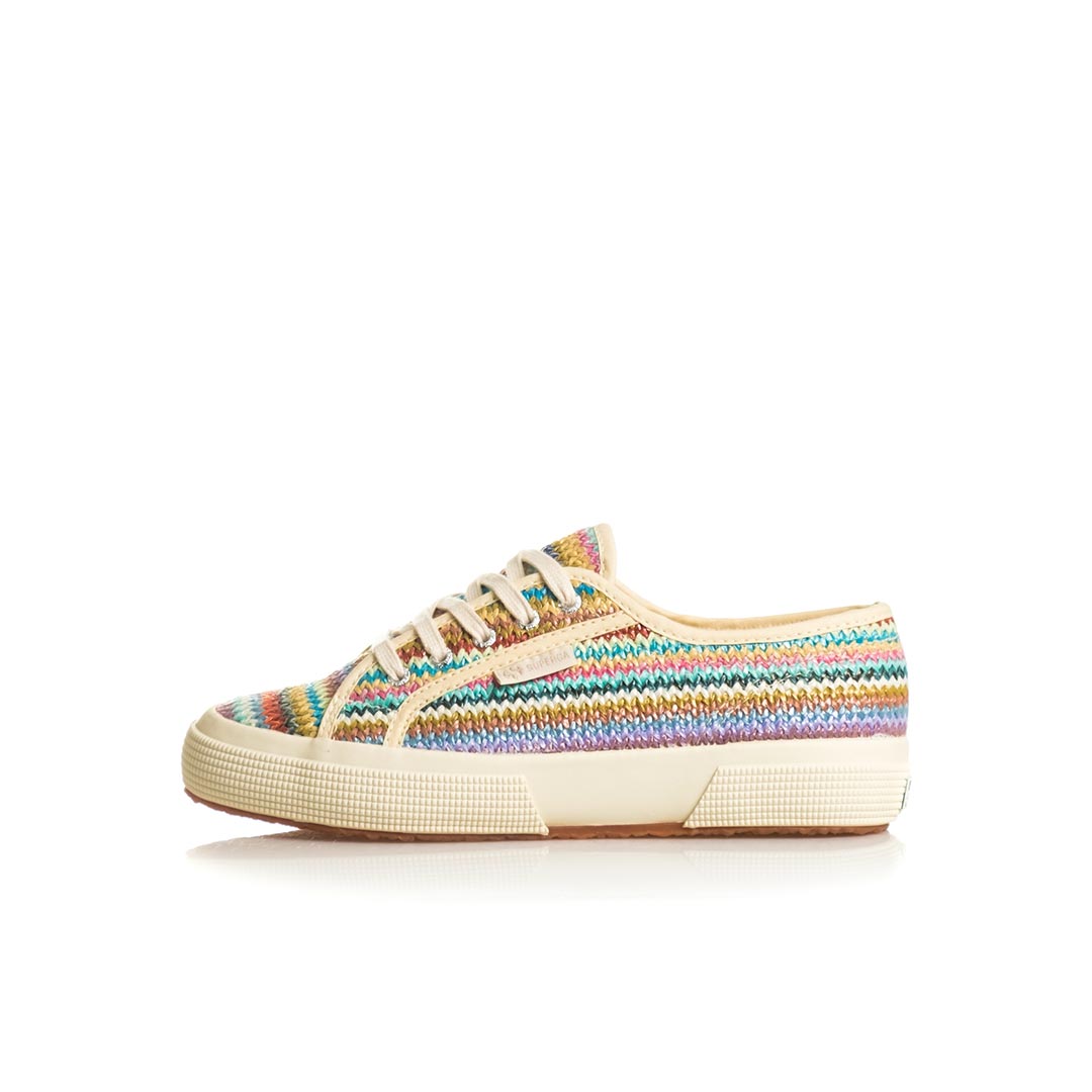 Questa sneaker allacciata ripropone l’iconica 2750 per adulti in un’adorabile versione mini me: la tomaia in rafia intrecciata e la palette d’ispirazione boho la rendono perfetta per vivacizzare i look estivi con un tocco raffinato. La suola in gomma vulcanizzata e la label laterale con logo jacquard confermano i codici stilistici del brand.