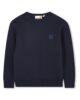 Maglione blu con maniche lunghe, girocollo, polsini e orlo a costine. È decorato con patch logato in gomma sul petto.